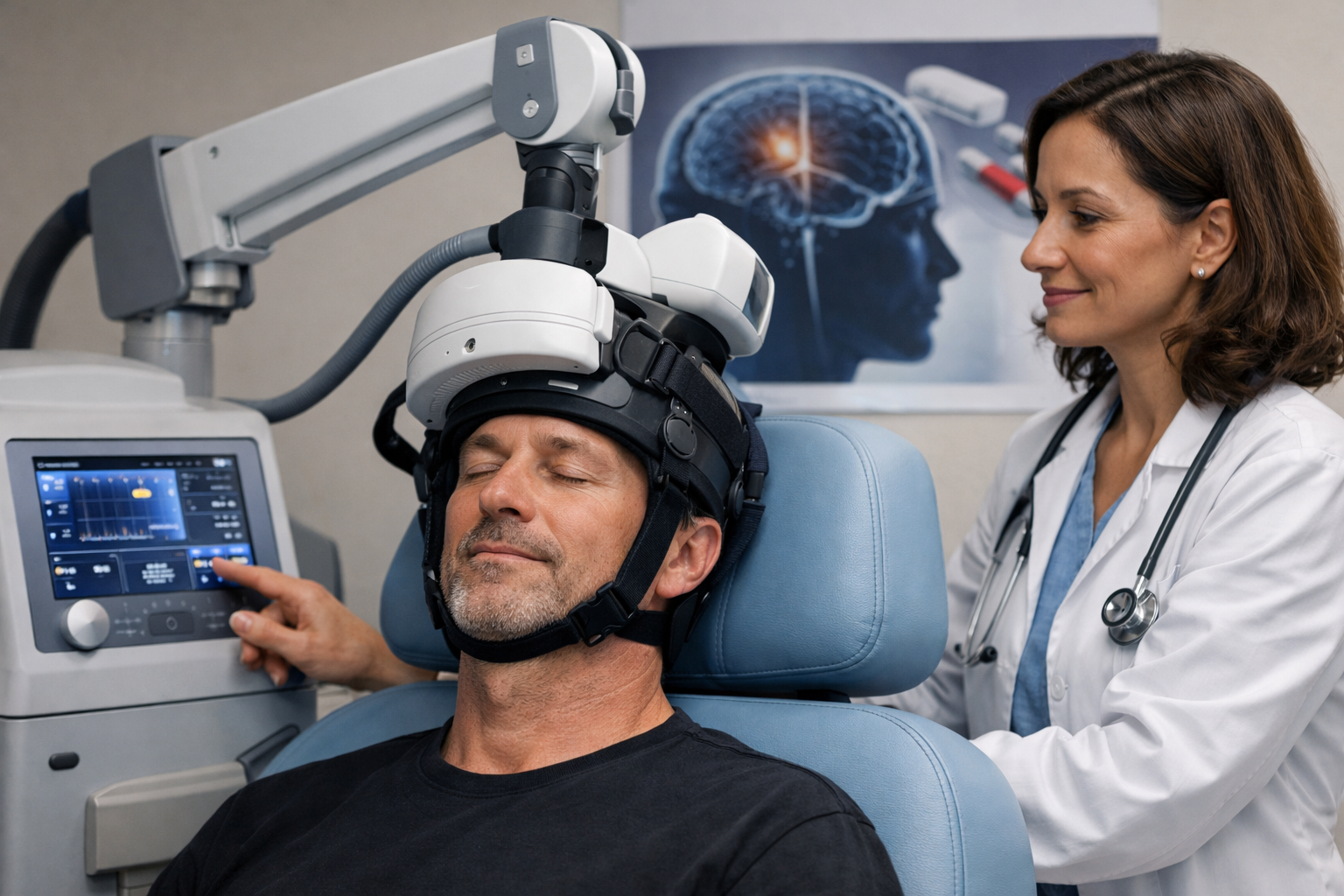 After psychological evaluation and brain imaging (using MRI or EEG), the doctor identifies the appropriate area for stimulation. The patient sits in a chair with a helmet on, and magnetic waves are directed to the brain for 5-30 minutes, depending on their needs.